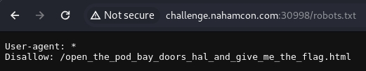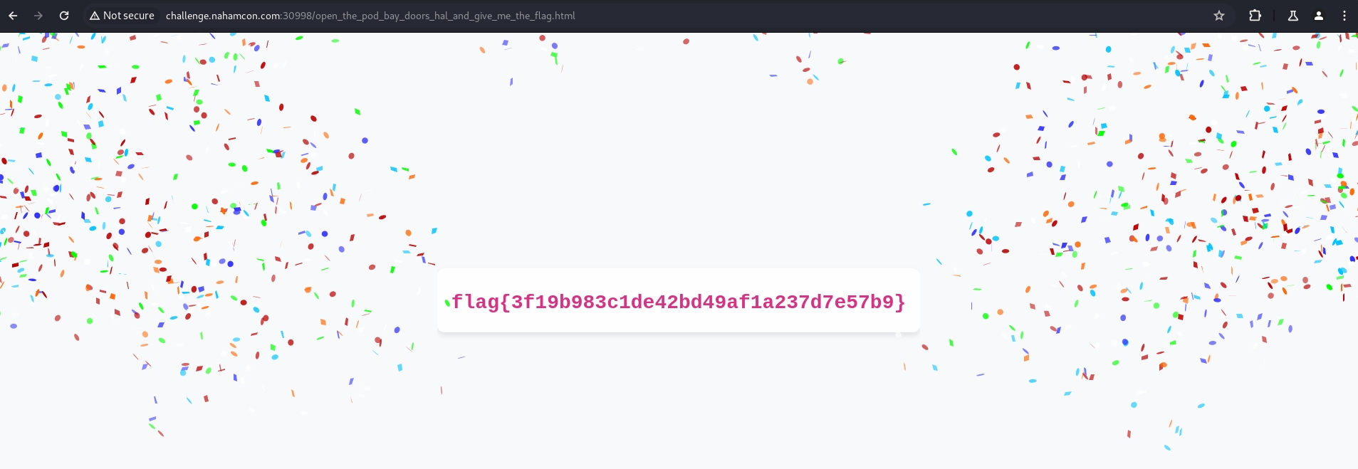 - After visiting - /open_the_pod_bay_doors_hal_and_give_me_the_flag.html, I got the flag.