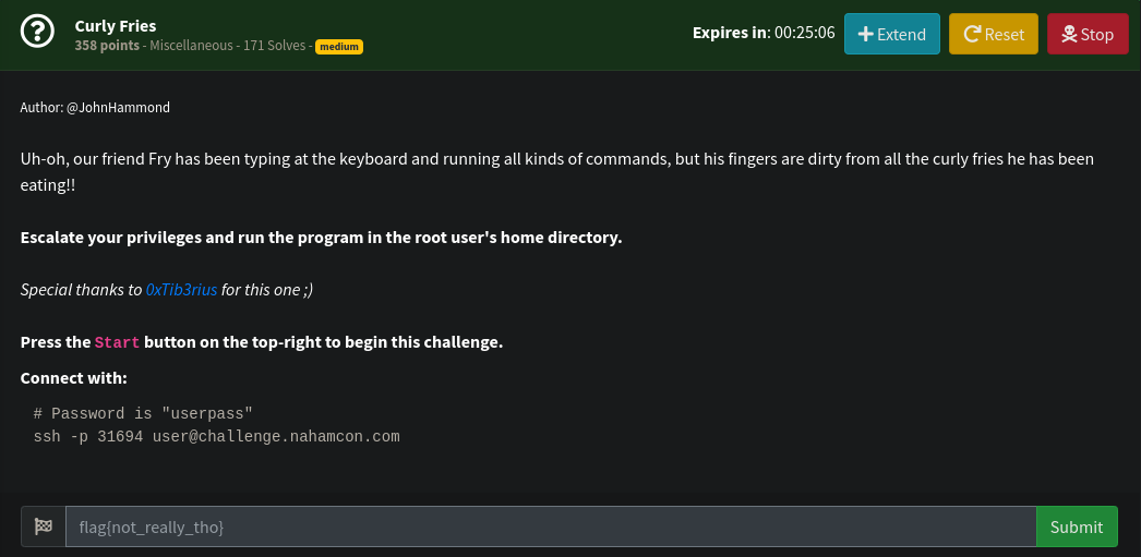 For this challenge, we begin by ssh into the challenge environment. Our objective is to escalate to root and get the flag.